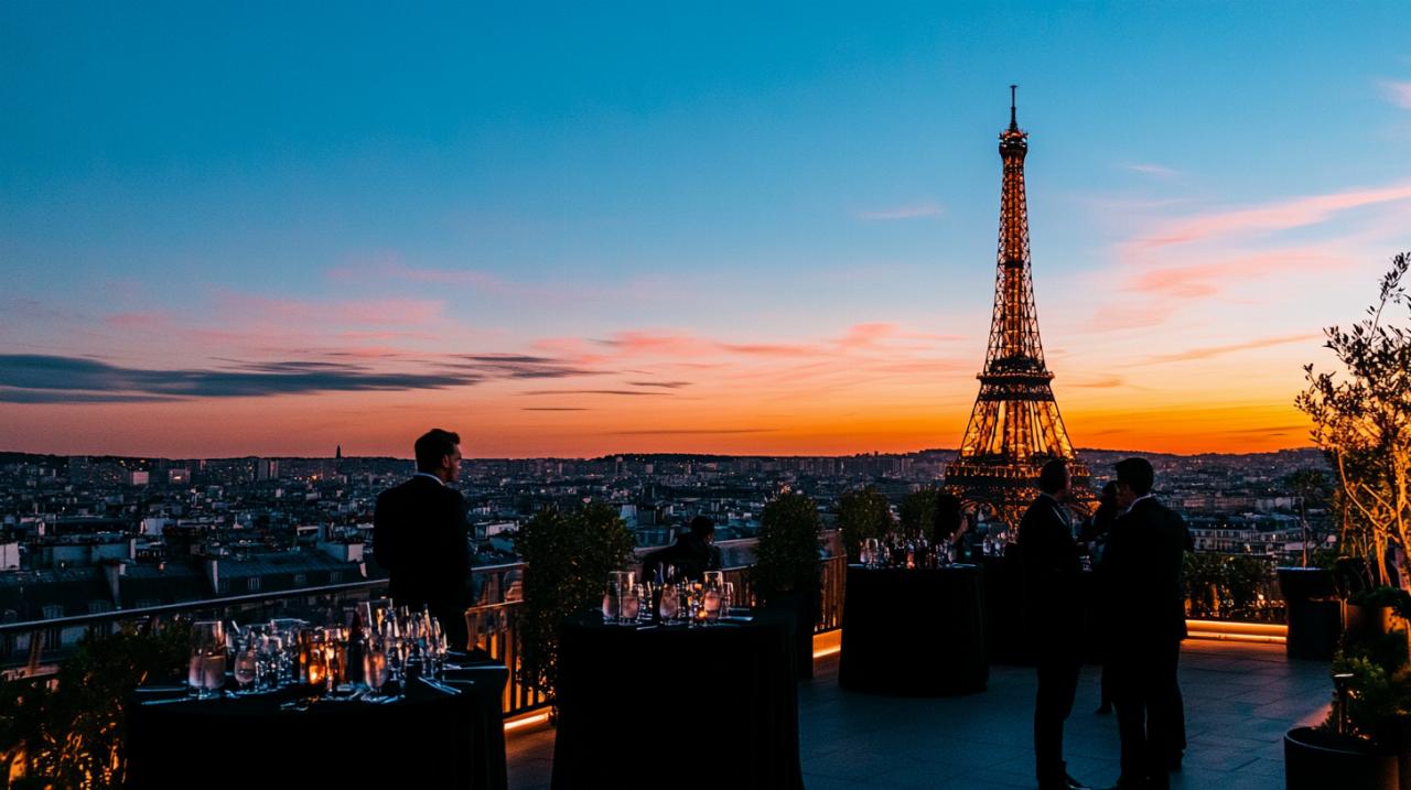 La capitale française offre une sélection impressionnante de terrasses panoramiques qui permettent d’admirer la Tour Eiffel sous son meilleur angle. Ces lieux d’exception se distinguent non seulement par leur vue imprenable, mais aussi par leur capacité à accueillir des événements de toutes envergures dans un cadre exceptionnel.